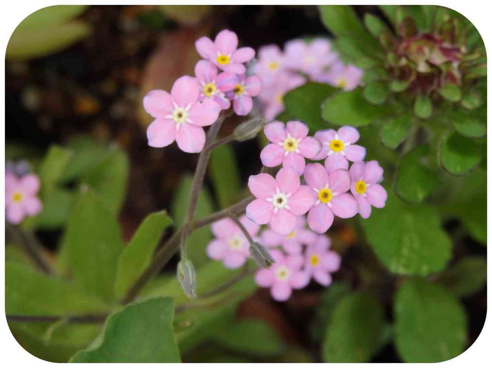 ピンク色の勿忘草ですー。園芸種なのでいろんなものがあって面白いですねー😝💕。