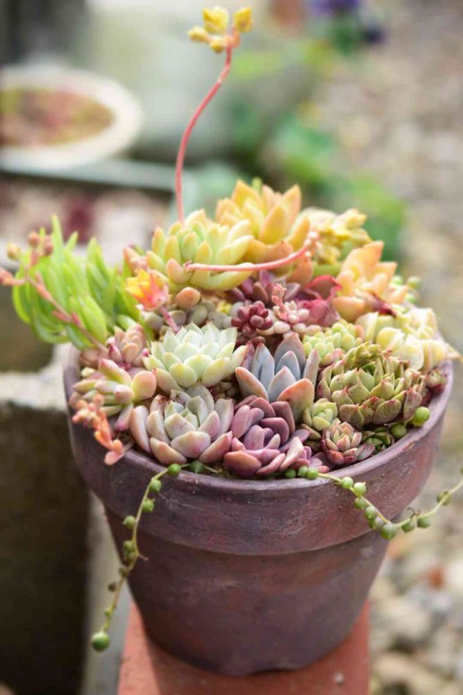 カタチも色もいいし、お花も咲いていて、変化が楽しめる寄せ植えですね🎶
