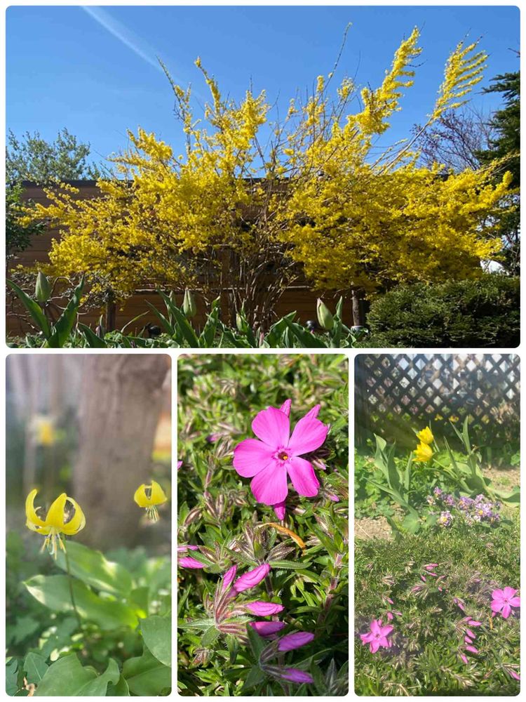 手前の方には前にレンギョウと投稿した種類と違うチューリップの蕾が出てきています✨🌷