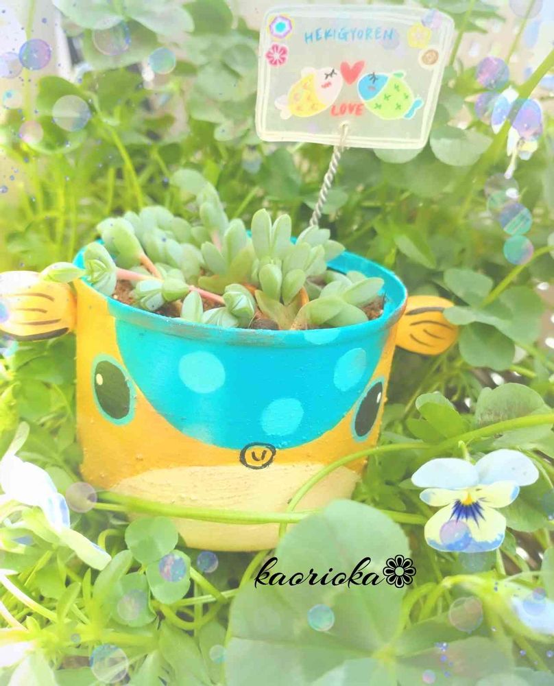 お鉢もフグ🐡ちゃん⁉️色合いも可愛い〜❣️(๑>ᴗ<๑)さすが……kaorioka2さん🎶*\(^o^)/*