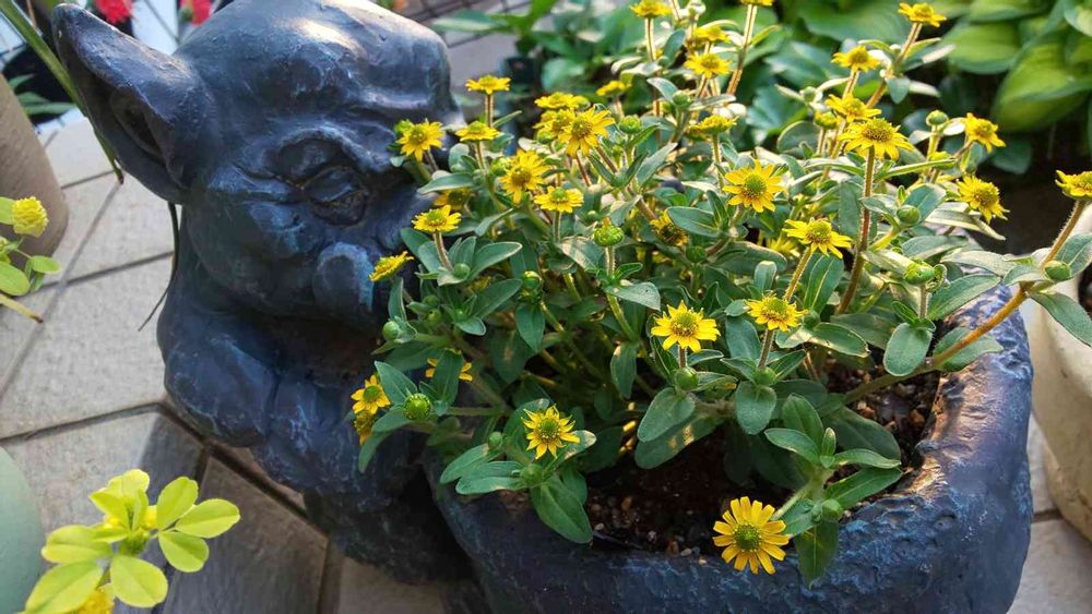 この夏ガーゴイル君?に守ってもらうのは何年か前にナメクジで相当苦戦して懲りたはずのサンビタリアのサンライト🌻