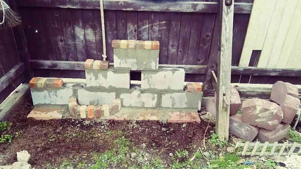 朝から作ってたレンガ壁❤あとは白く塗る予定です❤雨降りそうだから後日(*´∀`)