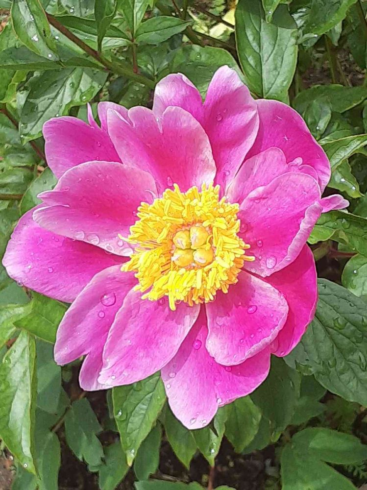 美しいお花 私も大好きです。葉っぱに切れ込みがないので シャクヤクでしょうか。 シャクヤクは真っ赤な芽が毎年出てきますし、ボタンは常緑の木ですから違いはありますが、お花だけをみましてもどちらかわからないくらい ふわふわで華やかで、