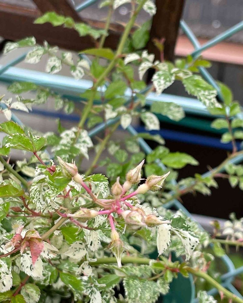 ハイジさんガーデンからお嫁に来た斑入りバラのプッチーニさん🌹蕾がついてきましたよ🤗