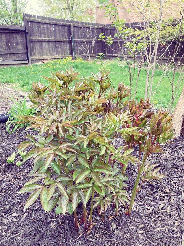 芍薬ももうすぐ蕾が出そうです。急に暖かくなってきました。週の後半は80°F越えです。つづく
