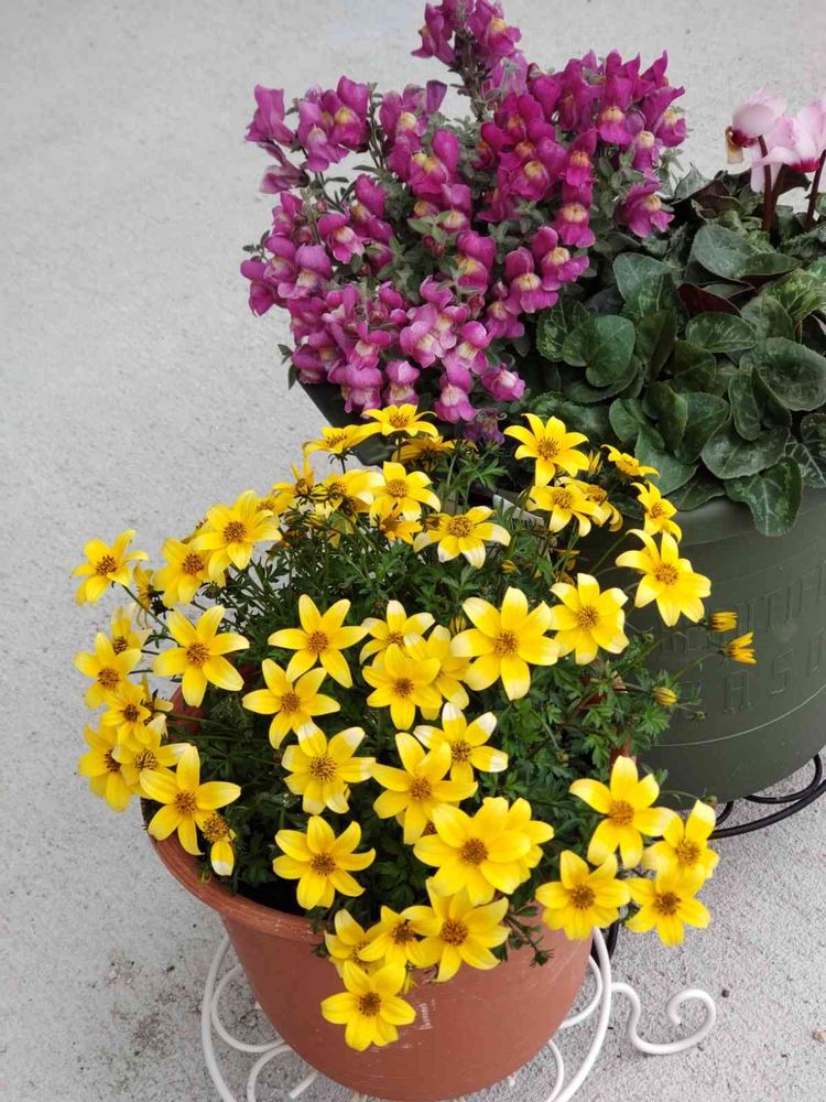 奥はキンギョソウシルバードラゴンもこもこ咲いてかわいい🤗