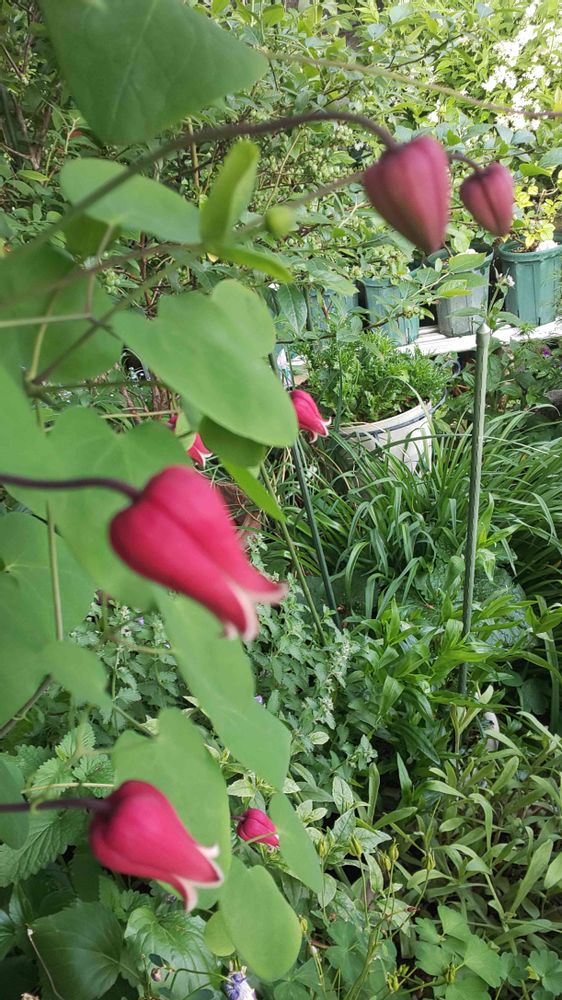 ベル型のクレマチス本当に可愛い💕ですよ。昨年我が家のお花を見に来た花友さんがこのお花を見て早速ネット注文したと言っていました。😁