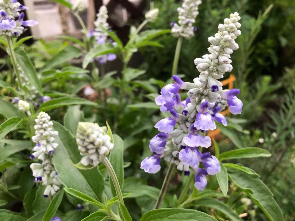 栄養系サルビア「サリーファン」が去年よに2週間遅れで咲き始めました💜