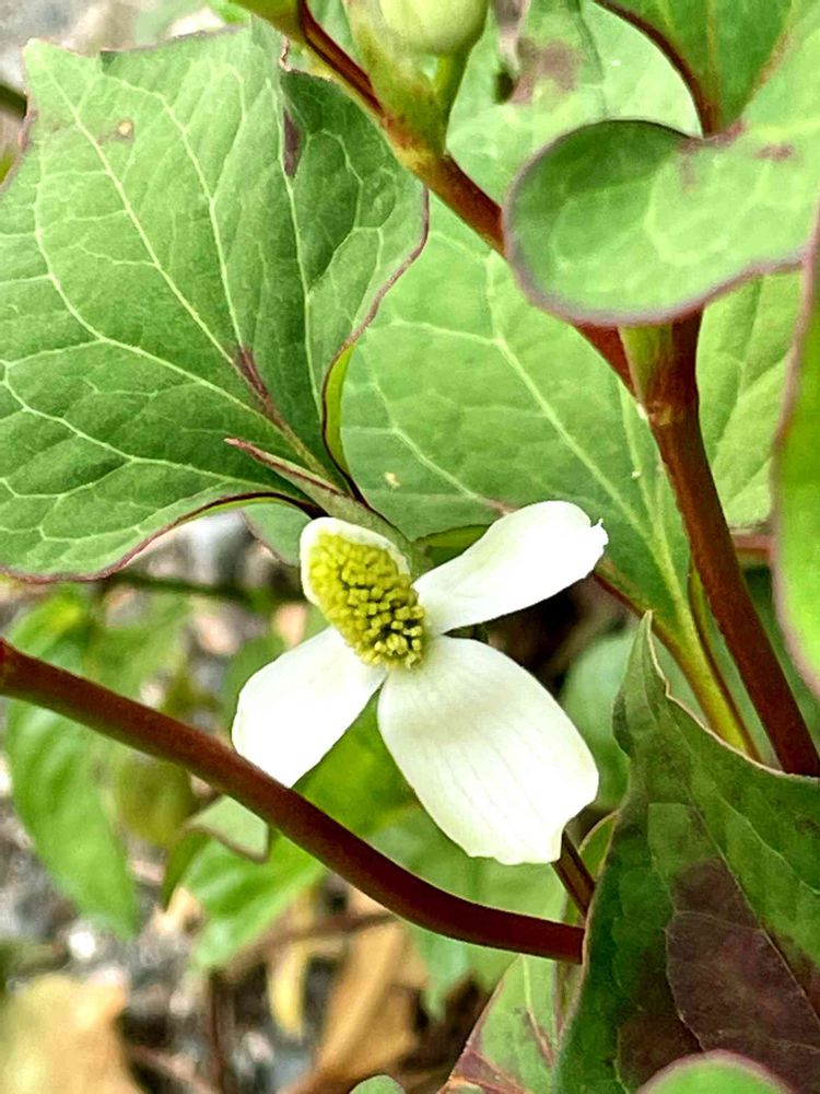 通り道のお宅の玄関先に、ドクダミの花を、見つけました。