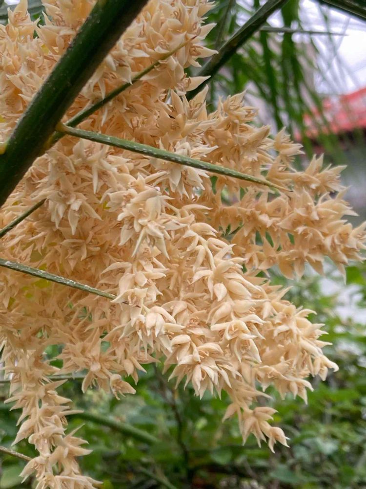 小さなお花が、いっぱい集まって咲いてて綺麗でしたが、夕方には花や花粉が下に落ちてて、地面が白くなってました。
