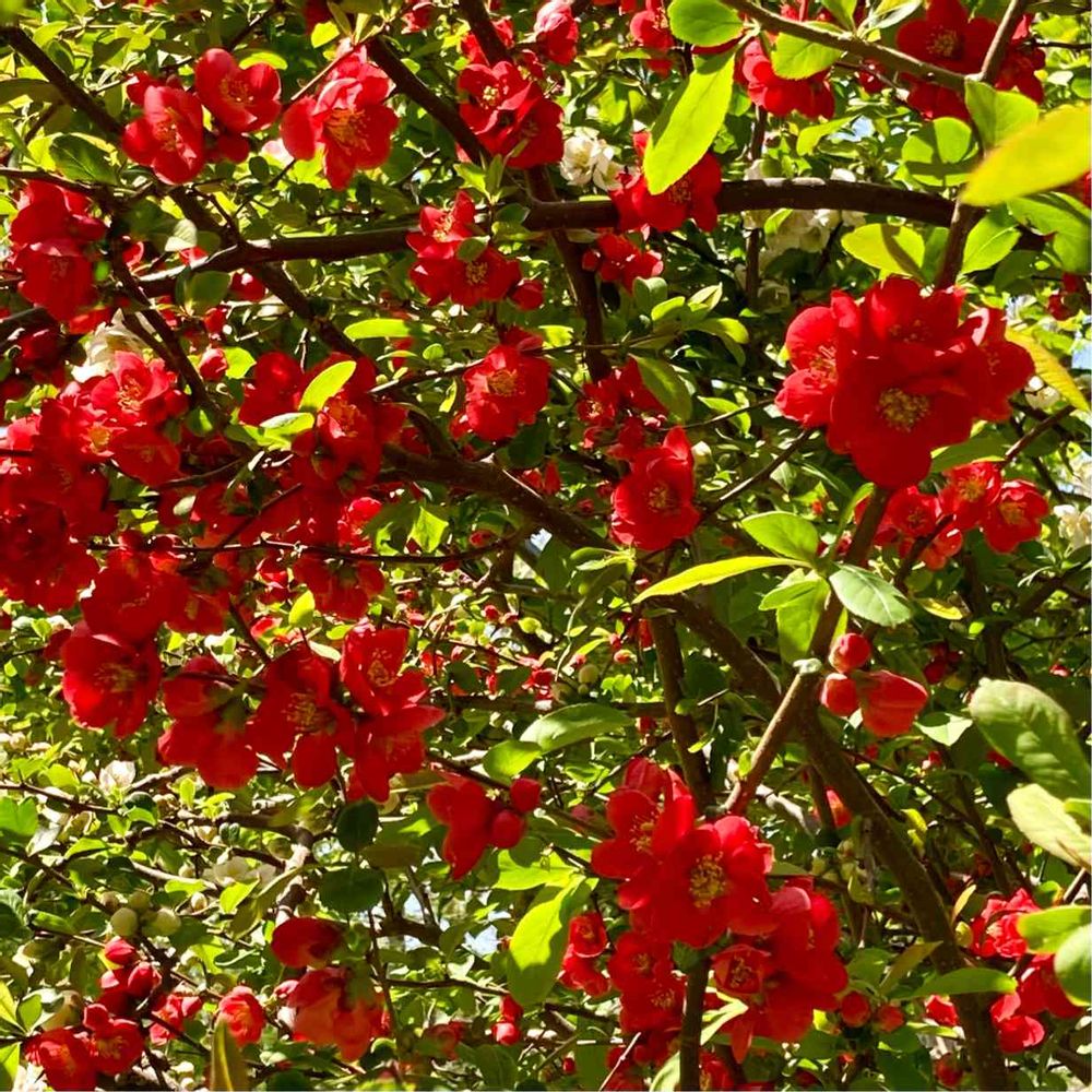 木瓜の花って、こんなに真っ赤だったかなぁ〜なんてー😍