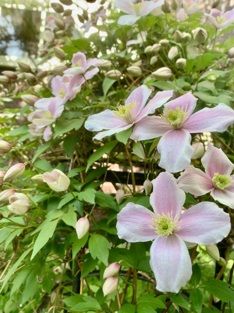 クレマチスモンタナ。ようやく花が開き始めました。開き始めが一番好きです。挿木で増やし続け今や庭のあちらこちらに植えてます。間もなくバニラの香りが漂い始めるので楽しみです。