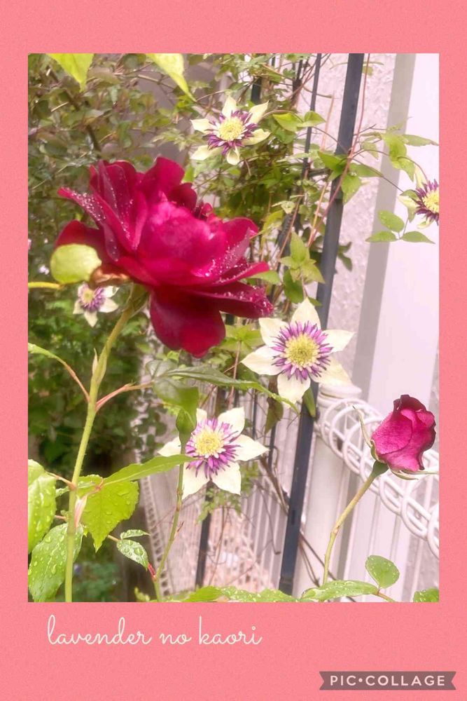 バラとクレマチスのコラボやっぱり素敵ですね♡