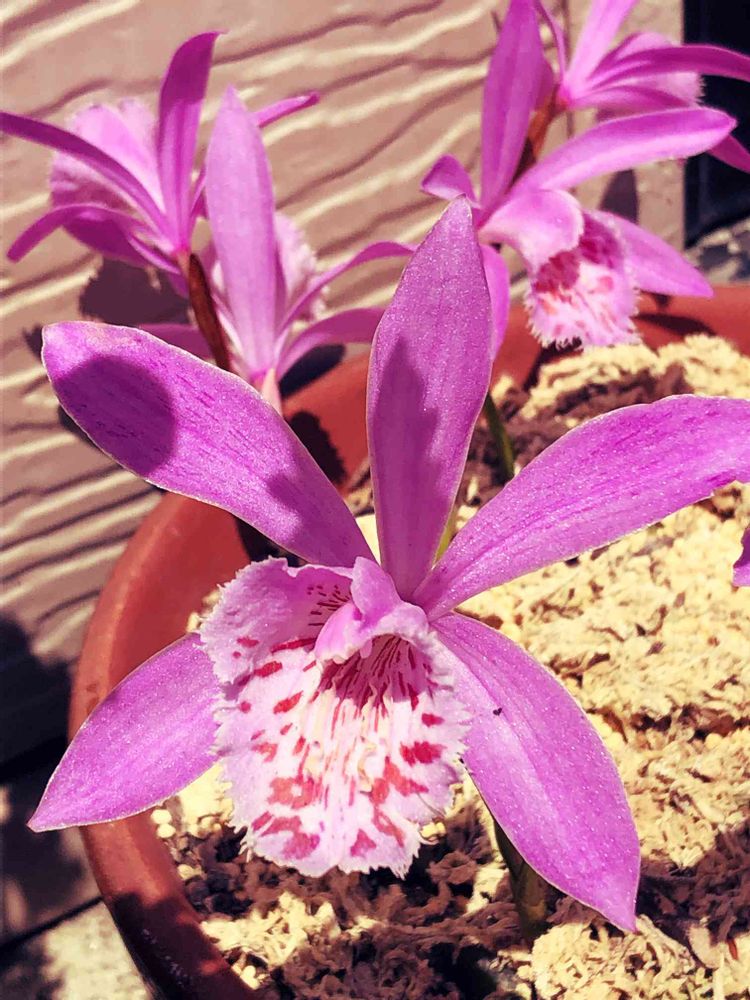 台湾の苔むした湿った場所や木の上などに着生した植物。花が大きくトキ色の花が咲く事から、大輪トキソウと言います。