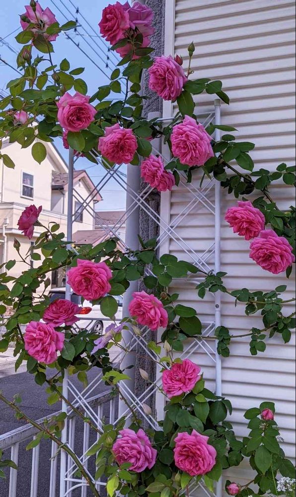初めて誘引したつるバラなので、イメージ通りとはいきませんでしたが、咲く🌹とやっぱりいいですね~🤗💕
