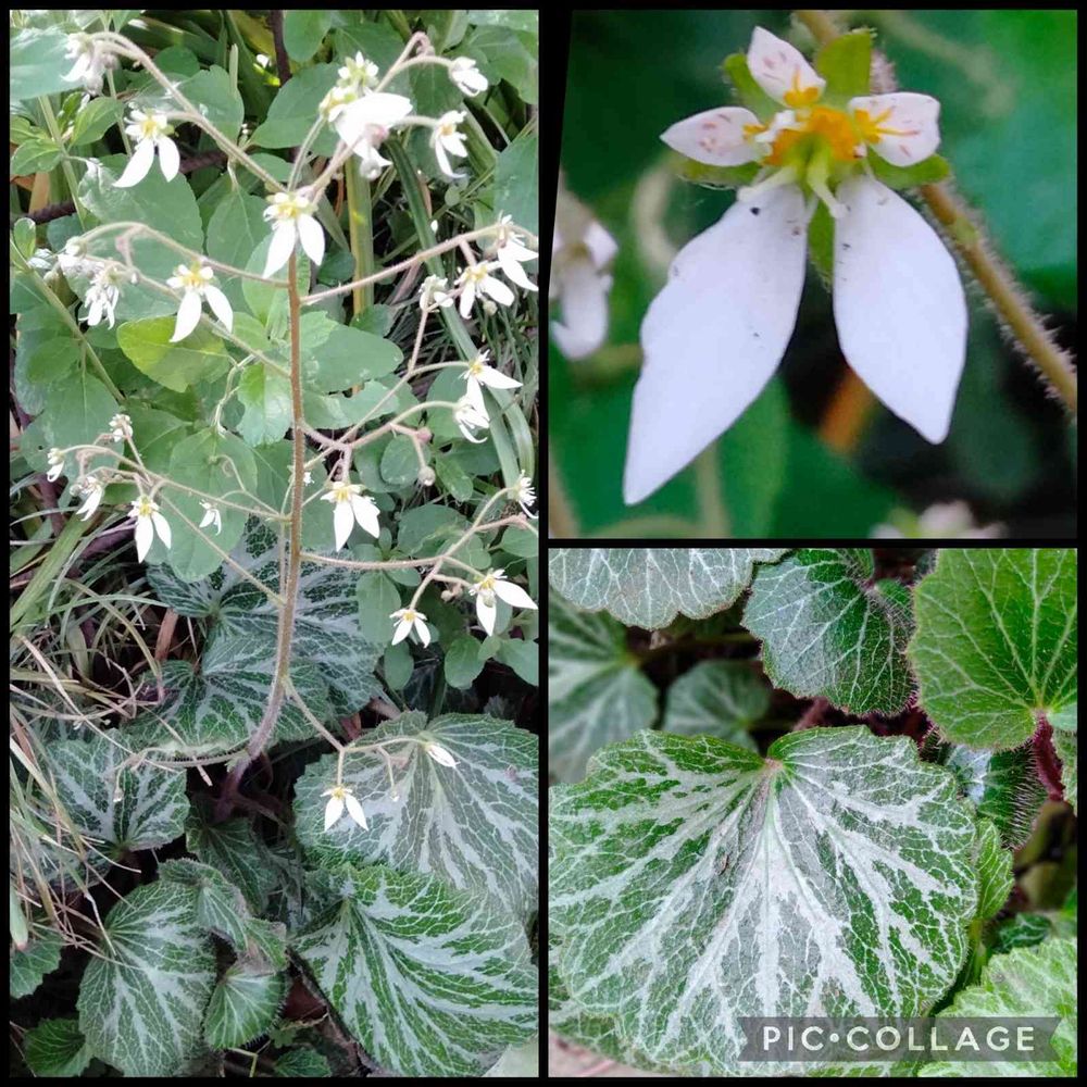 雪ノ下が咲く季節になりました🌼•••でも、我が家の雪ノ下(右下・4/7にも投稿)は、咲く気配がありません(TT)...他の草花にやるついでに、薄〜い液肥をあげたので、繁茂する方向に行ってしまったのかも•••💦