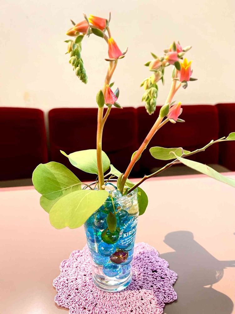 おはよう御座います^_^今日は☁️曇空です🙂エケベリア七福神を✂️グラスに挿しました。中々可愛い💕