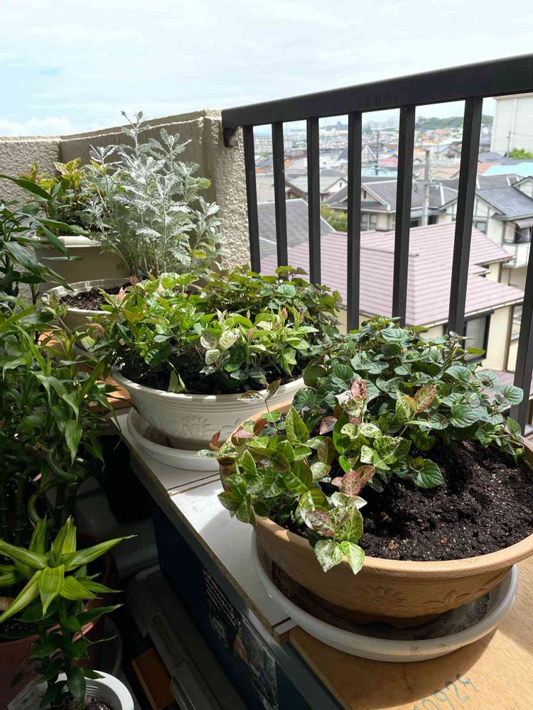 すみれが暑さで倒れ掛けてたので、こちらのプランターに植え替えて、南のベランダから東のベランダへ