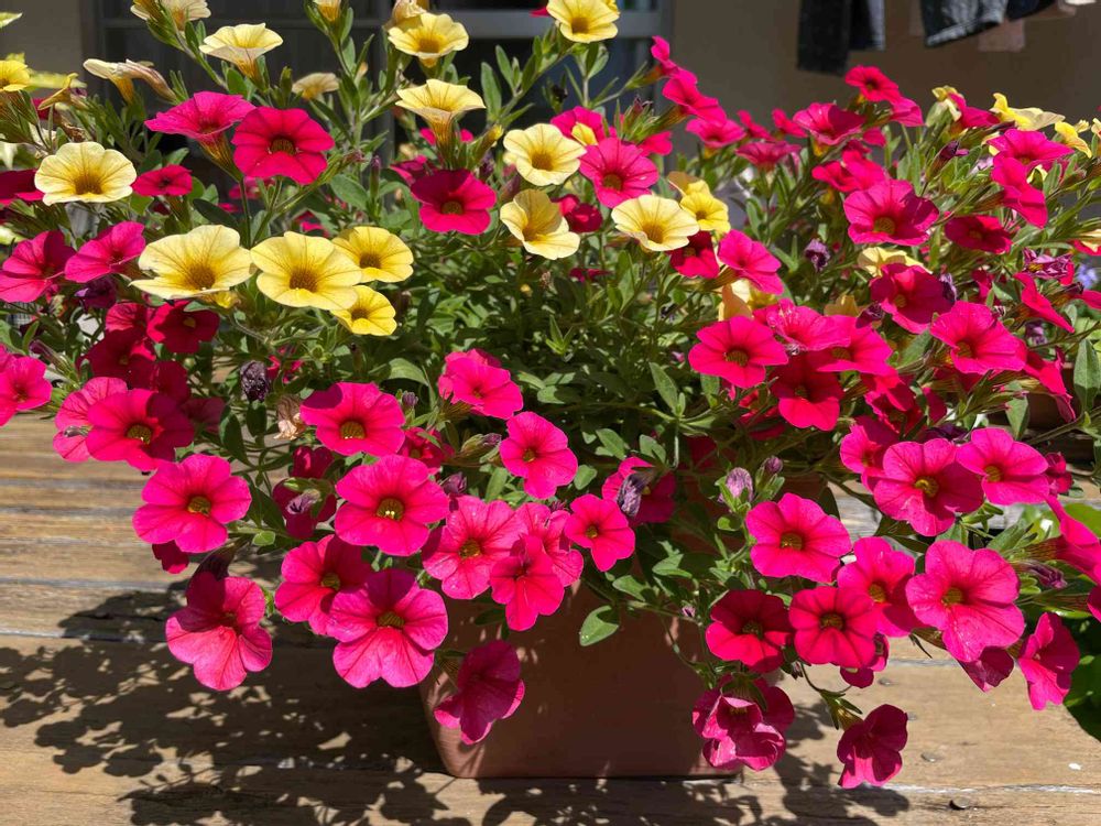 先月からますます、サントリーフラワーズさんのミリオンベルが花盛りになりまして…先月の写真ではめちゃ花つきの良さが伝わっていないと再度撮影しています。この間も全く精力衰えずで咲き続けてフラワーポットの枠がわからなくなるくらい凄いですよ♫購入時は片手で持てる苗木の小ささでしたのに5倍くらいに育っています😳