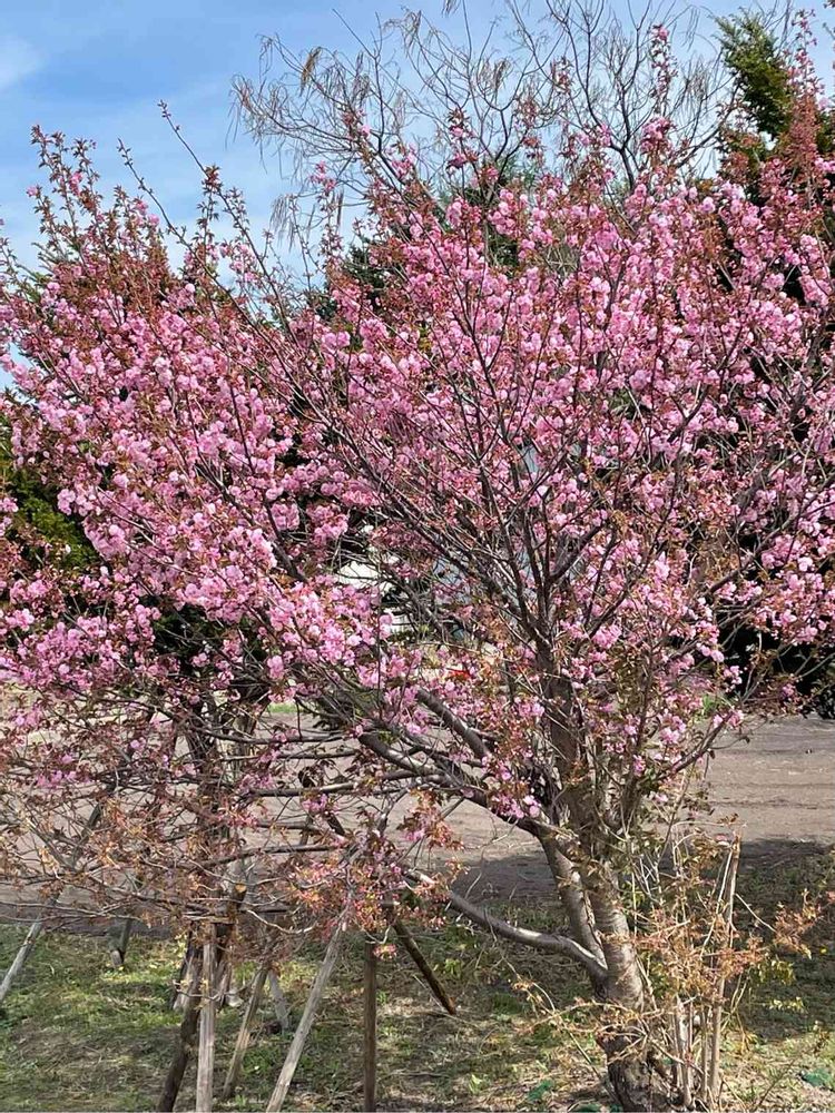 お隣のお宅の畑に素敵な八重桜🌸