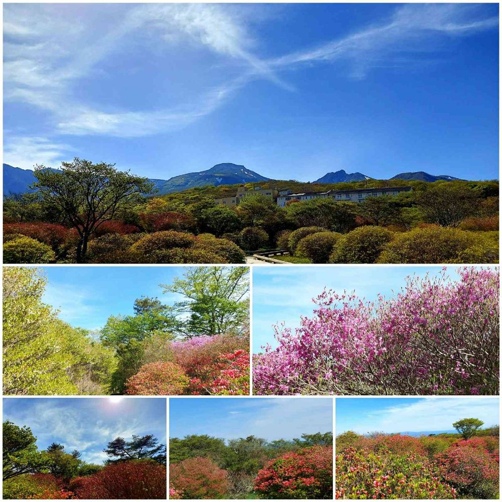 雄大な那須連山の中腹那須高原に広がる八幡のツツジ(標高1025m)約13haに10万本のツツジの大群生地です😊🌟