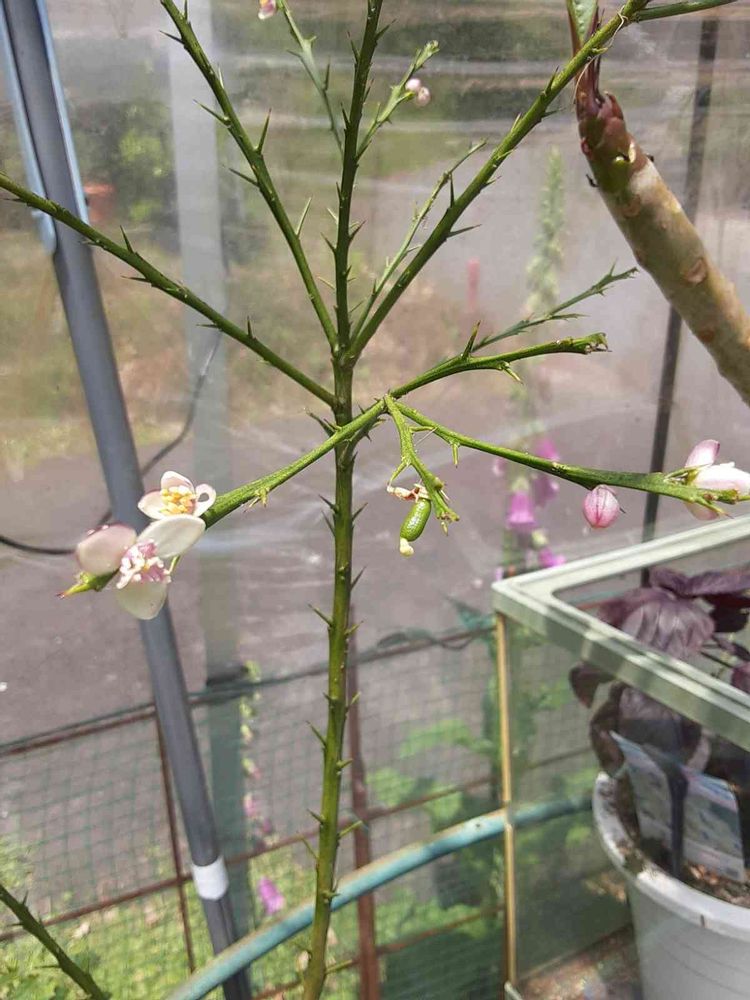 フィンガーライムの花 小さな実が付いてる。収穫期待!