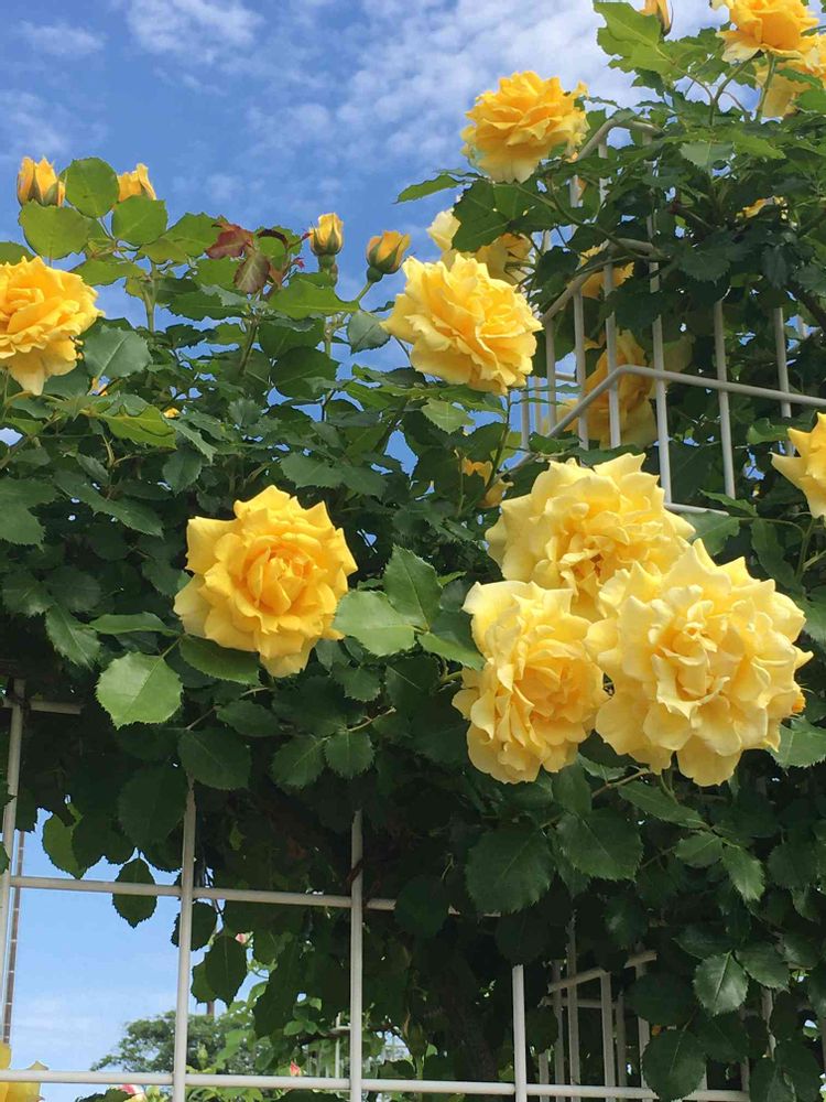 黄色い薔薇が青空に輝いていました🌼🥀