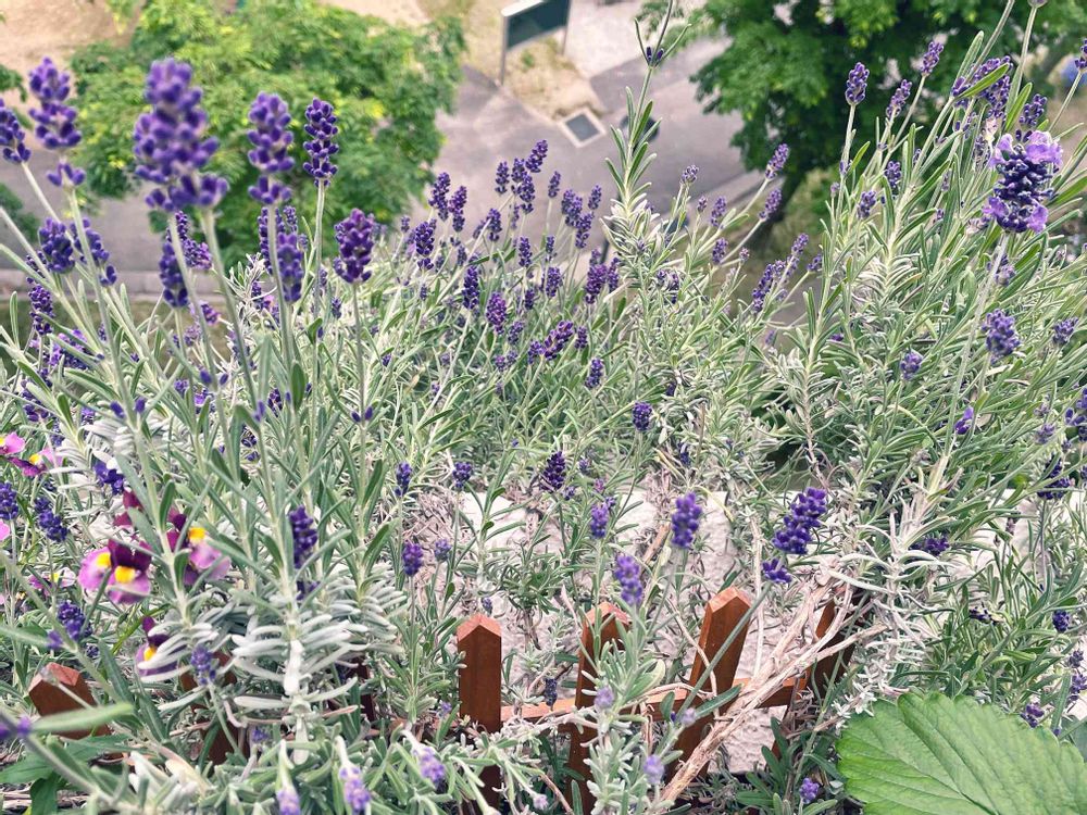 ベランダから枝垂れたラベンダーが咲いていました😊家の中から見えないのが残念😂