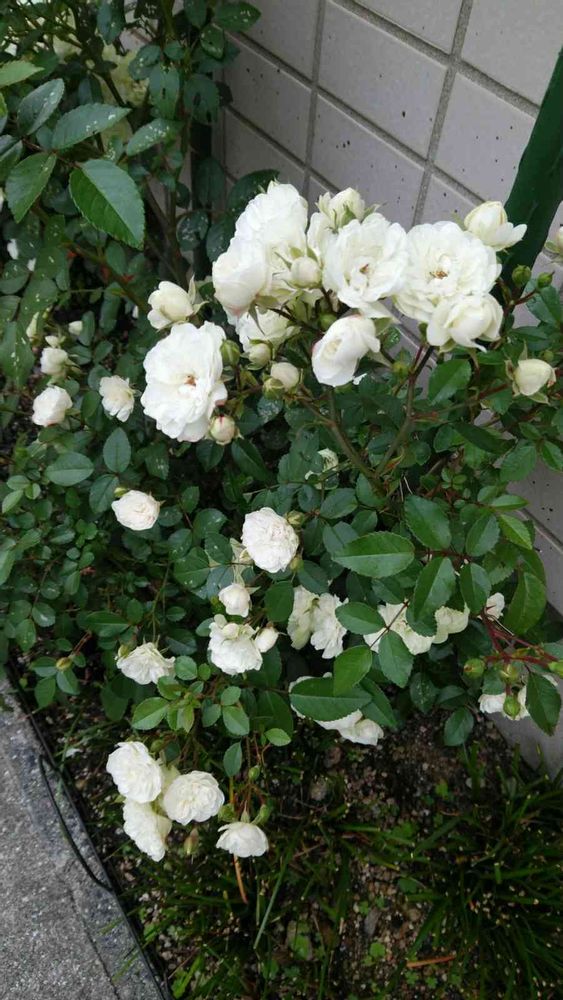 本日通院帰りに撮影。八重咲きの白いミニバラが咲いてました。香りが漂い癒やされます。