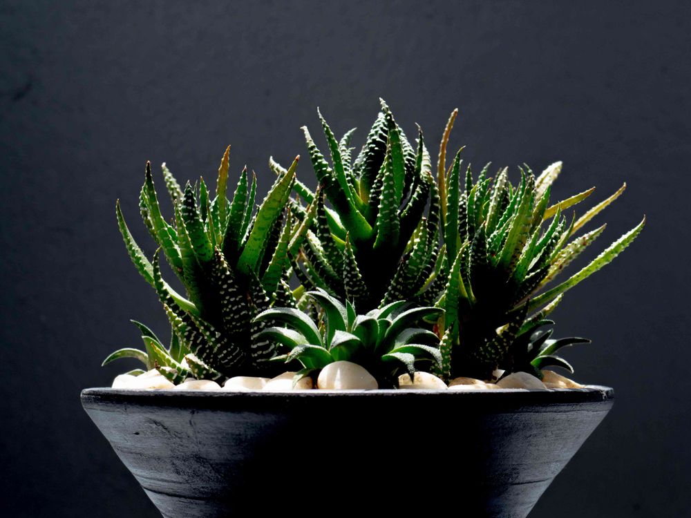 硬葉系ハオルチアの寄植え。徒長したり葉焼けしたりするも、順調に増えています。