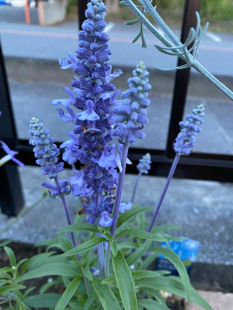 いわゆる色💜のサルビア ボルドーさんもいますが、この色も夏に向けて気に入ってます🥳