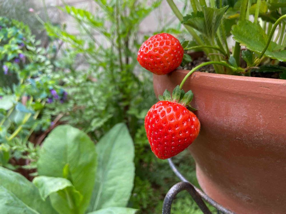 ナメクジにやられずに、よくここまでご無事で😁艶々いちご😍