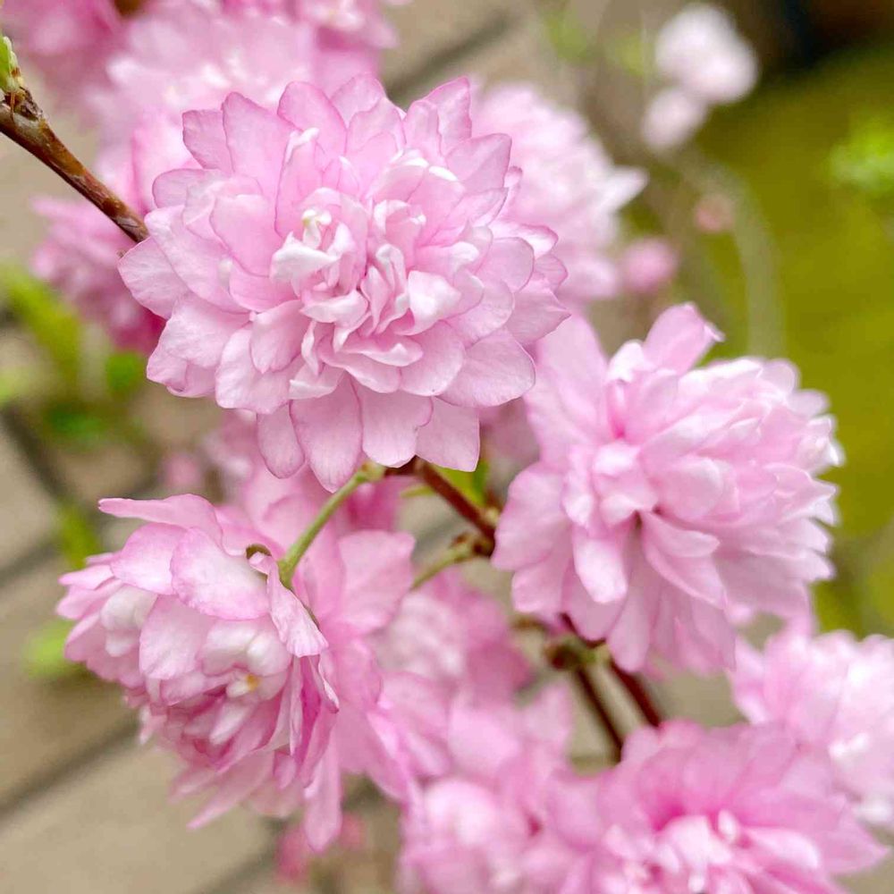 ニワザクラ、なんて可愛い❤️ピンク色とフリルの素敵な花がお庭で咲いていて、いいですね。
