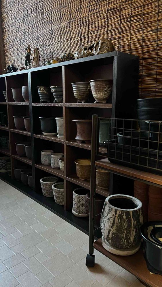 素敵な重量感のある植木鉢とすてきな棚がバッチリ合っていますね👍