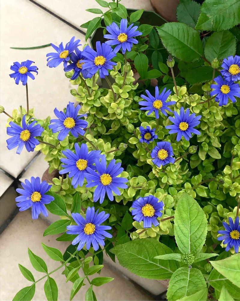 [@id:306173]さん こちらのブルーデージーは、葉っぱとのコントラストがあざやかなので、パンチの効いたブルーデージーさんです💙
