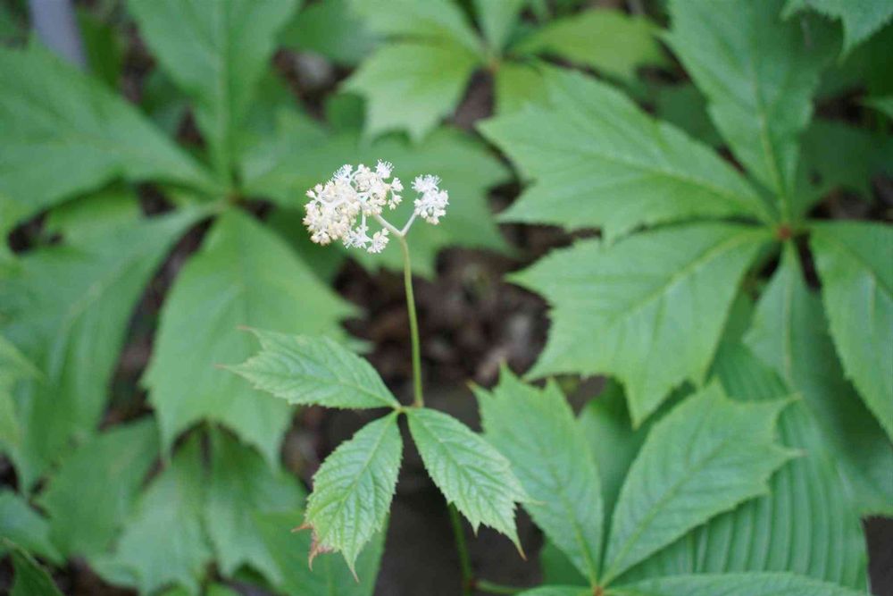 これが筑波実験植物園で出会った山野草のヤグルマソウ(矢車草・ユキノシタ科)です。確かに、葉っぱが矢車のような形をしていました。