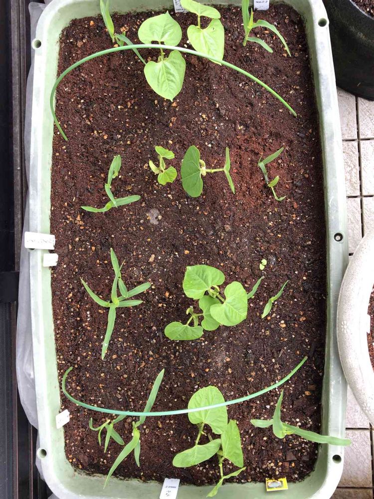 両端はトウモロコシ🌽ピュアホワイト、そして真ん中がつるありインゲンケンタッキー!インゲンは間引き済でトウモロコシ🌽は間引き様子見!今後収穫まで辿り着くか?実は隙間にバジル🌱とディル🌱も種まきしてみたが…😅