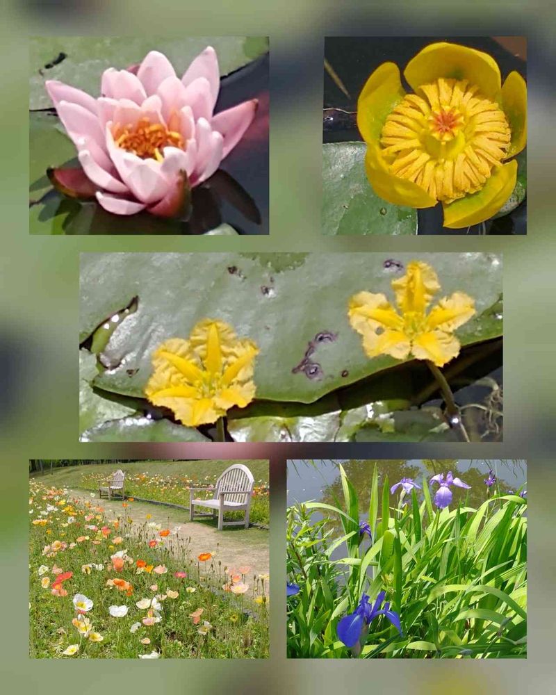 温帯性のピンクの睡蓮 コウホネ(スイレン科) アサザ(ミツガシワ科) カキツバタ(アヤメ科) ポピー