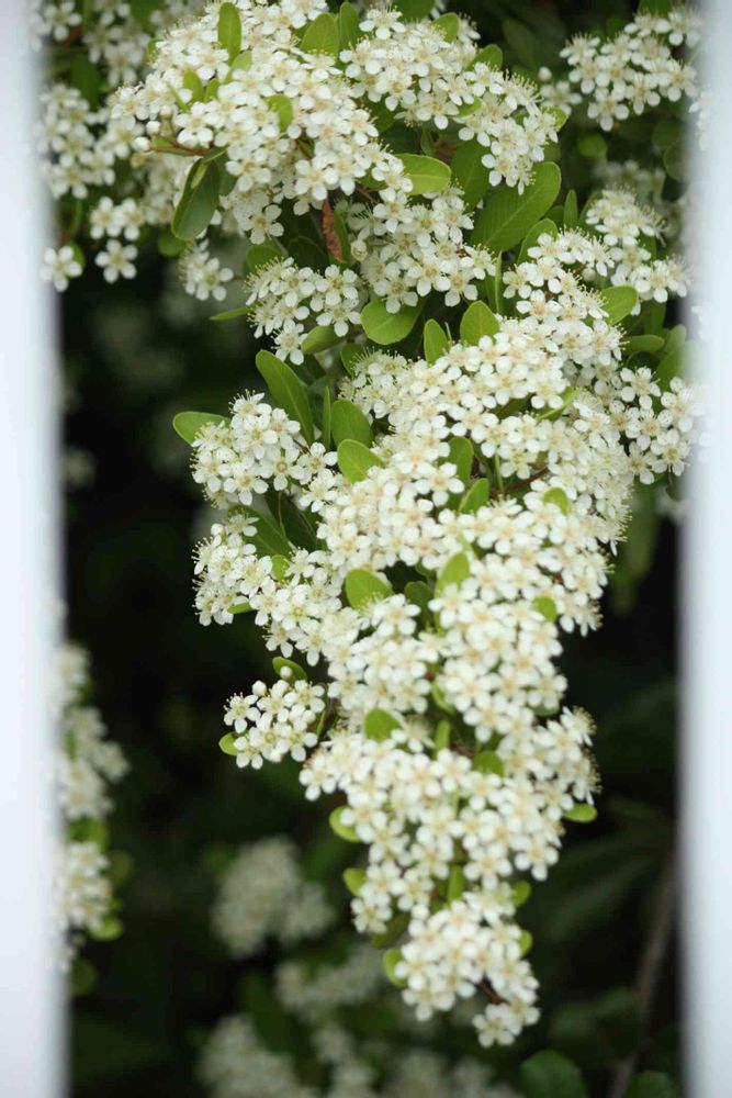 隣りの団地のフェンスの中が、トキワサンザシの白い花で溢れていました💠💠💠