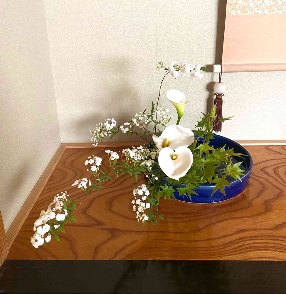 さん コメントありがとうございます。カラーじゃなくてコデマリのことですかね? 花をとって線を部分的に出すことで、軽さが出たり線が強調されたりします。花を取るのはもったいない気もしますが、作品としてはとった方が良くなったりりしますねー