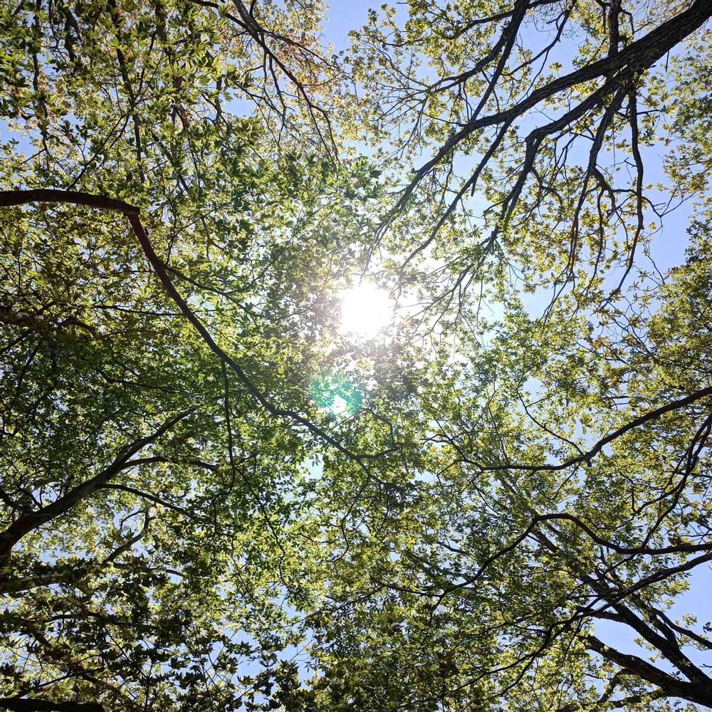 頭上の木々の僅かな隙間にちょうど☀️が……