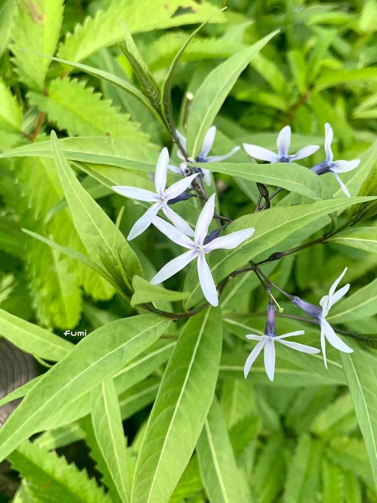 あまり目立ちませんが、淡い青紫の星型の花を初夏に咲かせる野趣のある宿根草