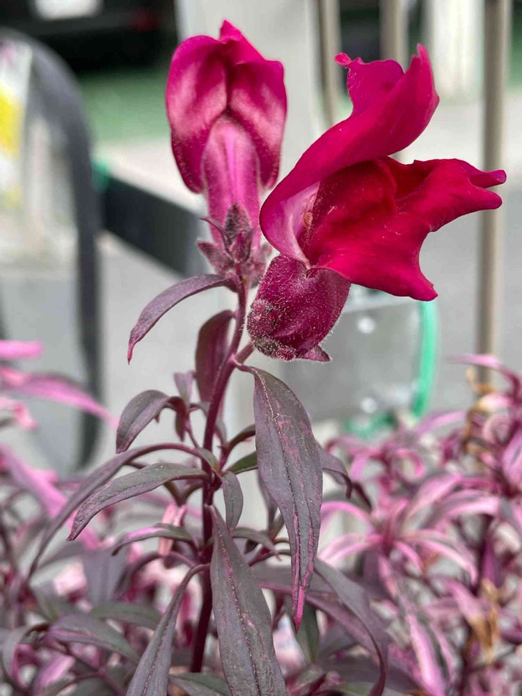 「金魚草 ブランルージュ」ビオラと寄せ植えにしていた金魚草、咲いてきました。渋い赤の銅葉がステキです。