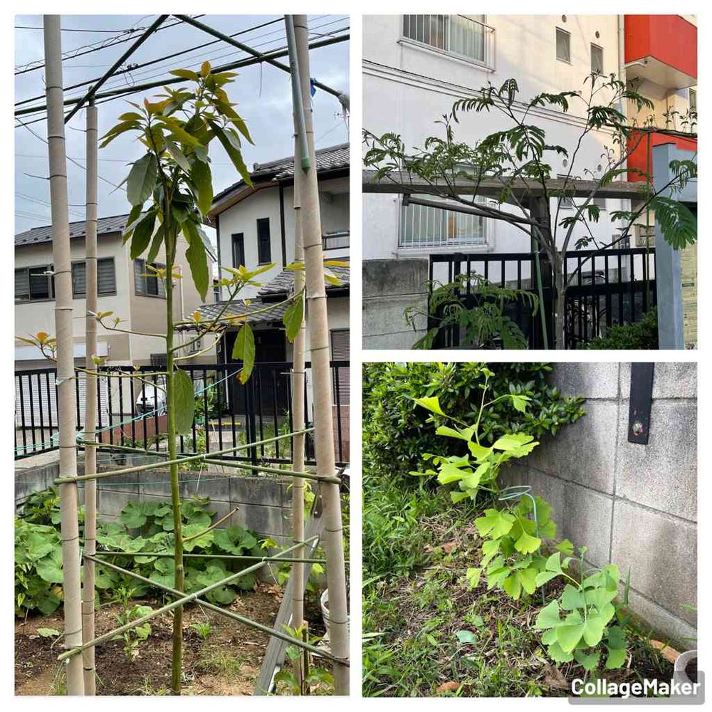 右下は、イチョウの幼木今朝の姿です。写真ではわかりづらいですが、この2本明らかに葉の色の濃さが違うんです! もしや~うまい具合いに雌雄一対のご夫婦だったりして…💖 これはもうギンナンGet(孫たちが?)間違い無しですね😛 笑