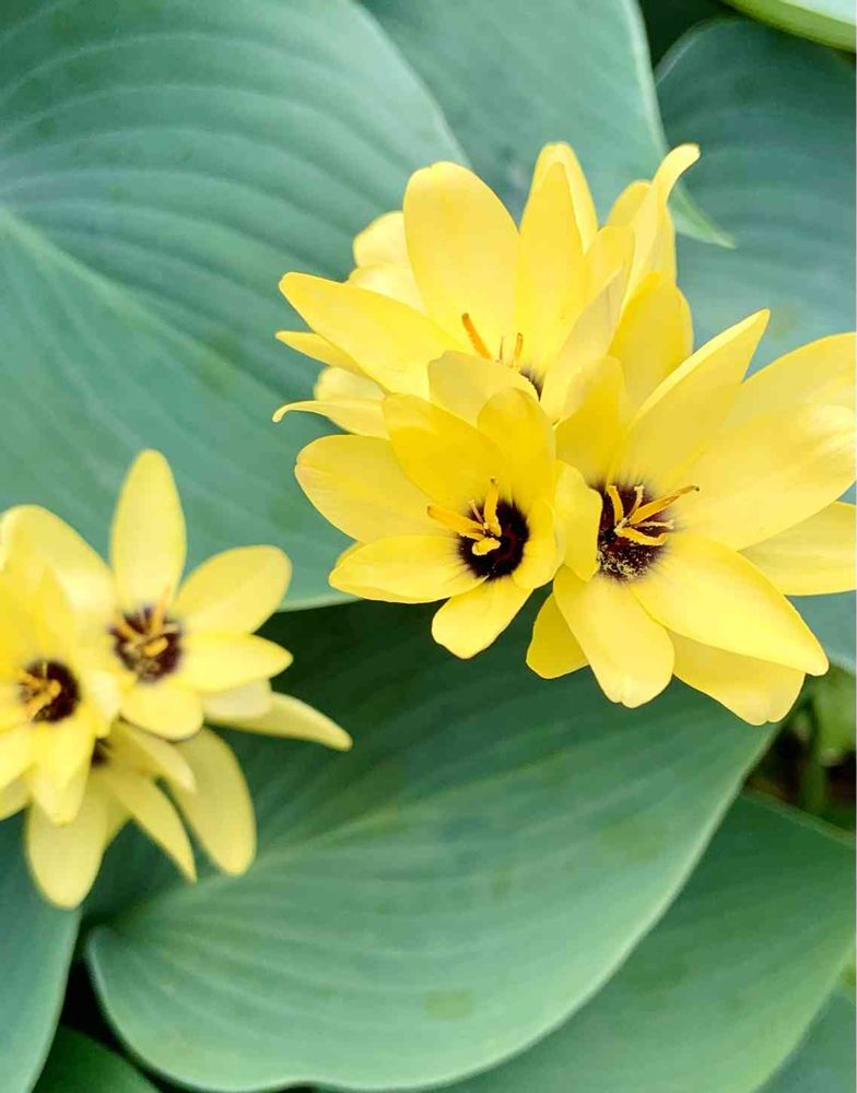 ギボウシの大きな葉がイキシアの繊細な花を風雨☔から守ってくれそうですね❤