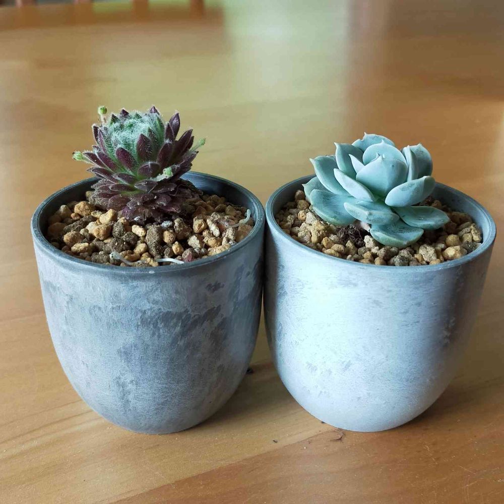 セリアの鉢に植え替えてみました🎵質感がいい感じ✨受け皿もついてます。
