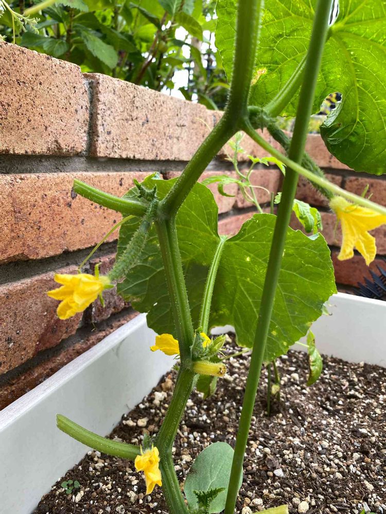 あれこれチャレンジして、キュウリもその一つ💕毎日の成長を見るのが楽しみです😻