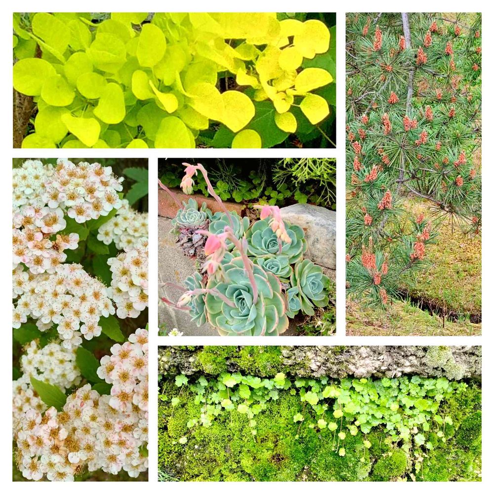 多にくちゃん🎵花さいてるね😃こ手まりも綺麗よ❤️右上↗️は松なのかな💚