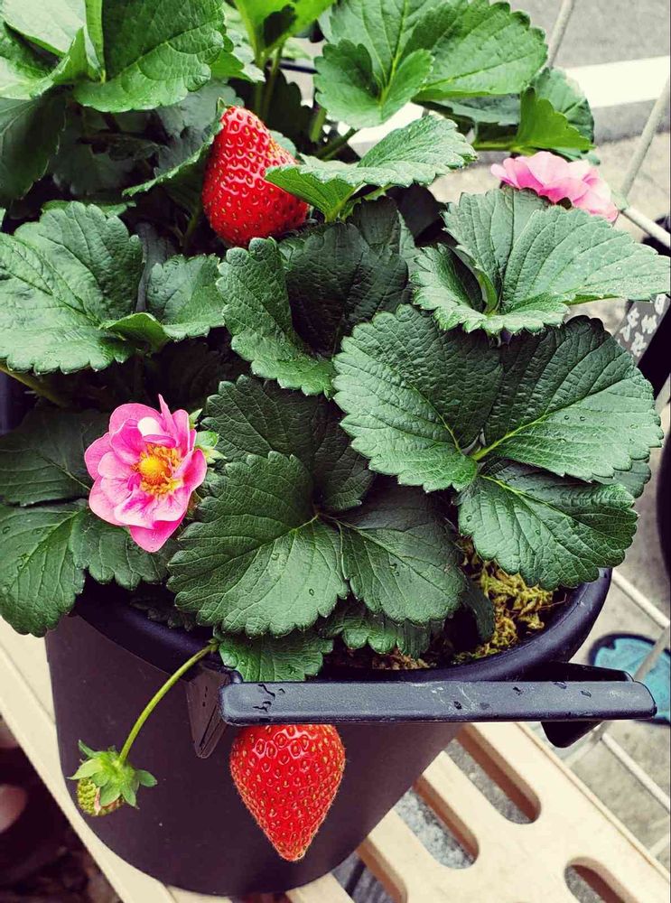 ピンク色の🍓のお花、私も初めて見たのでビックリしました❗