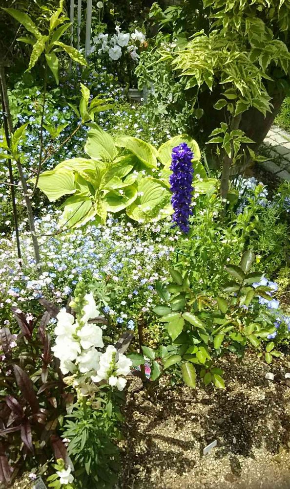 庭に忘れな草がたくさん咲いて、その間からデルフィニウムやギボシがでてきました✨